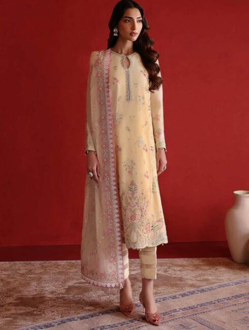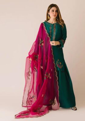 3 Piece- Pure Embroidered Sheesha Silk Suit S112727
