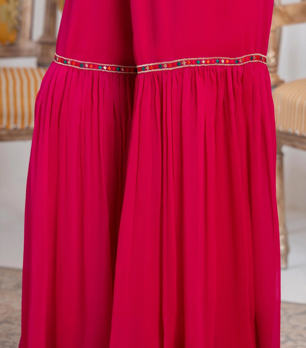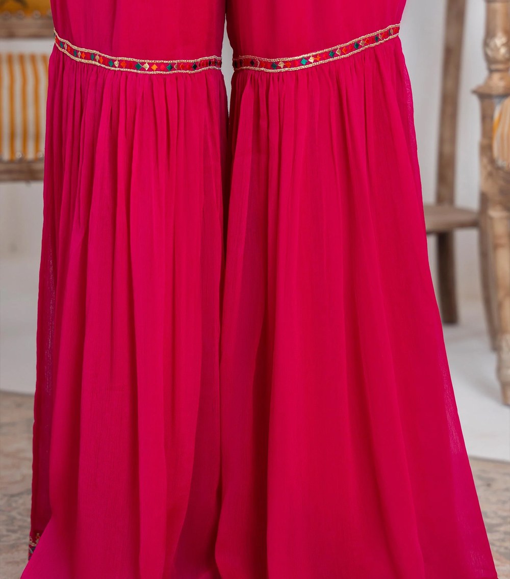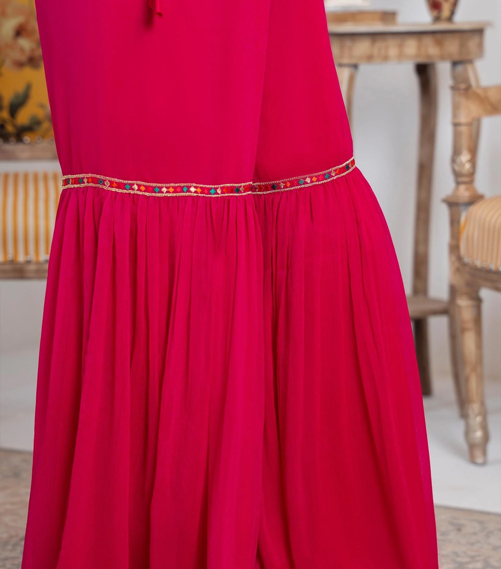 Experience elegance with the Gharara in Pink, crafted from premium Chiffon. This 1 Piece is perfectly designed for any occasion.