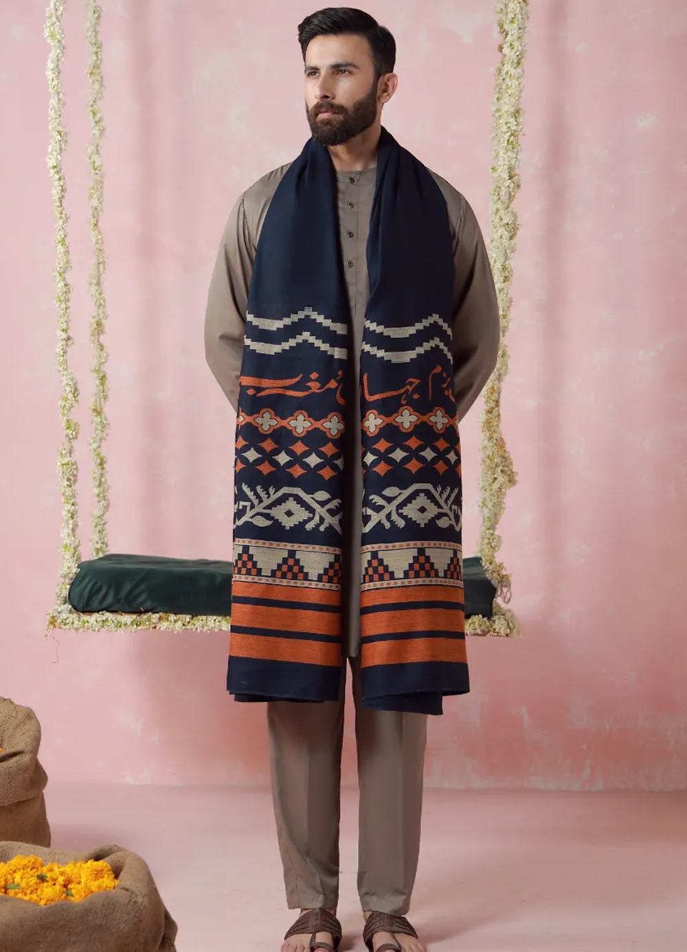 Unisex weaved acrylic shawl, featuring Urdu calligraphy of poetry by Allama Iqbal throughout.