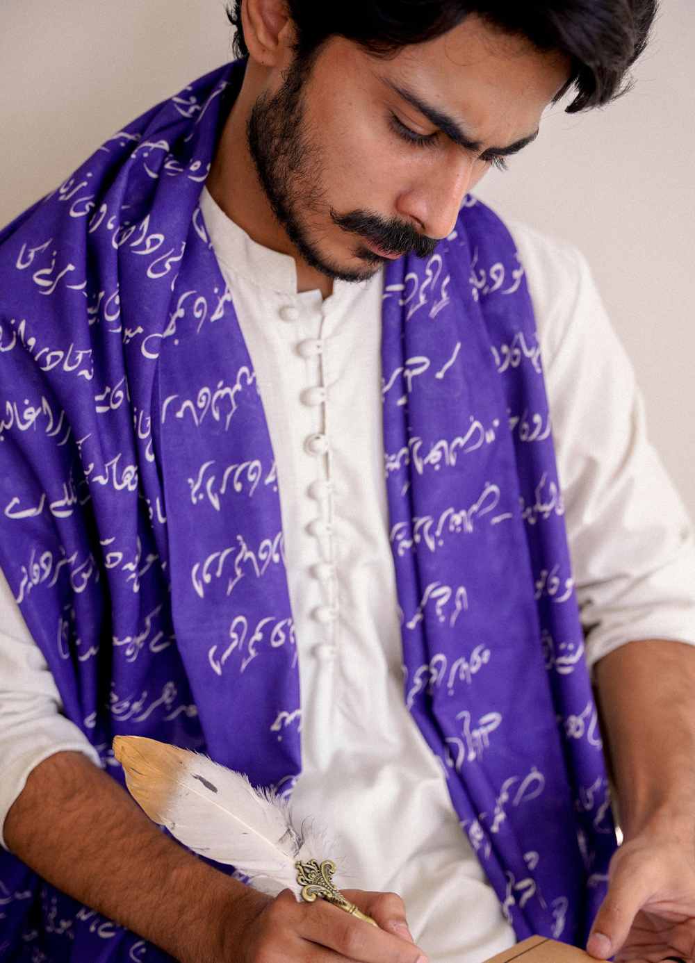 Double Sided Textured Armaan Stole Featuring Urdu Calligraphy of Poetry by Allama Iqbal.