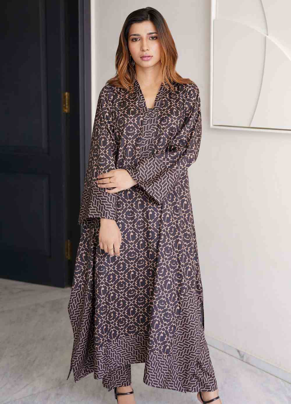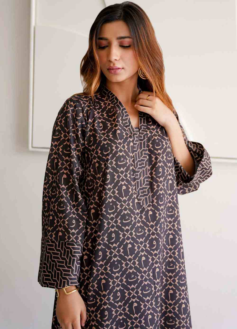 Printed 2-Piece Set made from Soft Crepe with a Long-Length Shirt and Straight Pants. Featuring Calligraphy of Urdu Letters Throughout the shirt.