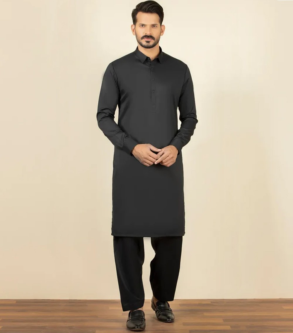 A classic eastern wear set designed with clean stitching and thoughtful detailing. The Black Blended Casual Kameez Shalwar offers a neat look & comfortable fit – ideal for long wear, daily use, or special occasions with a touch of tradition.
