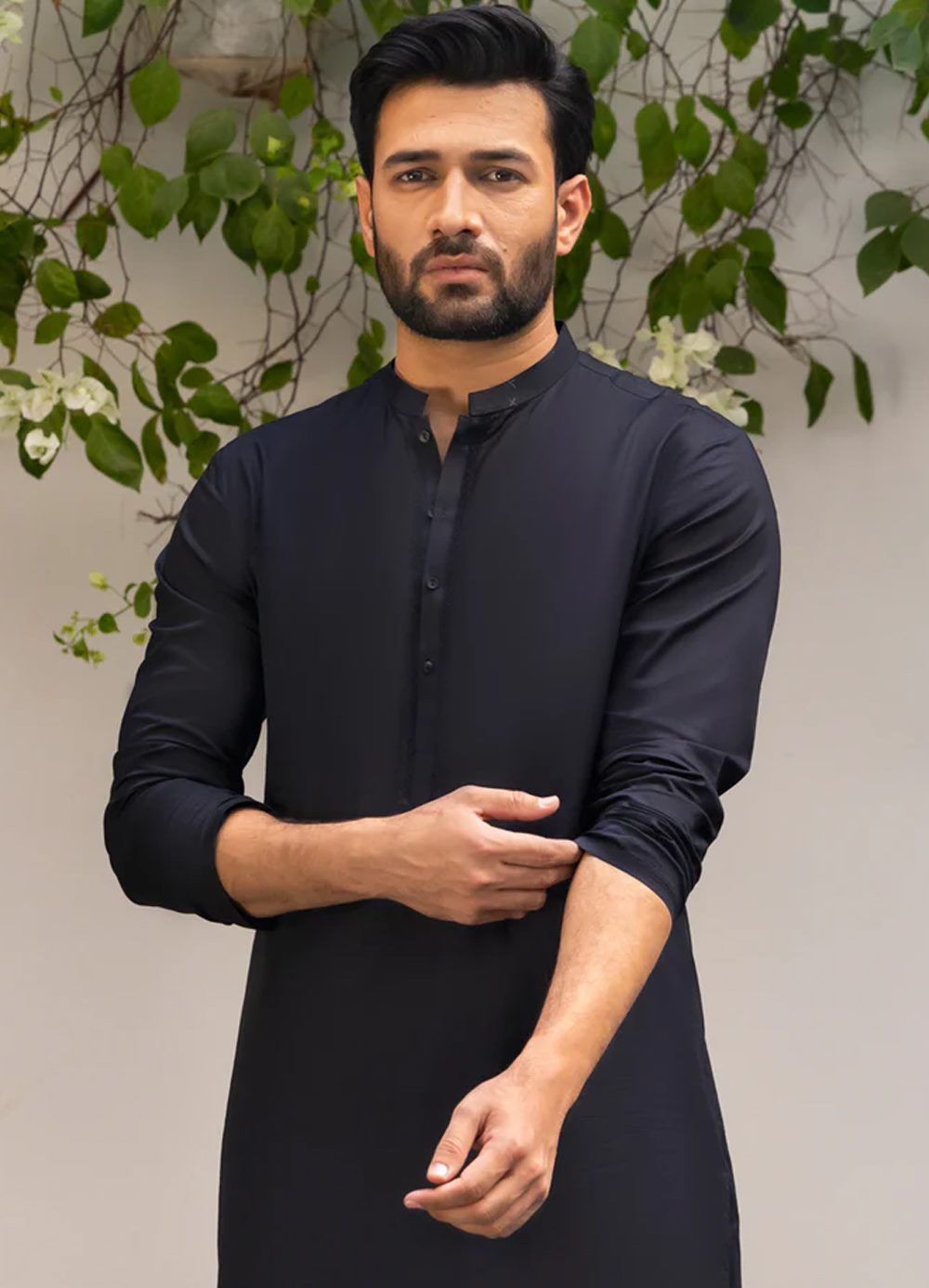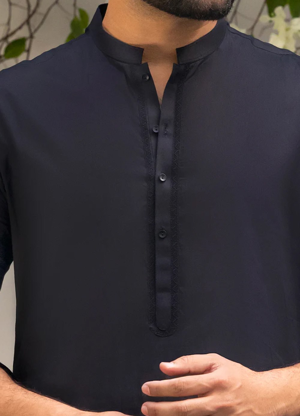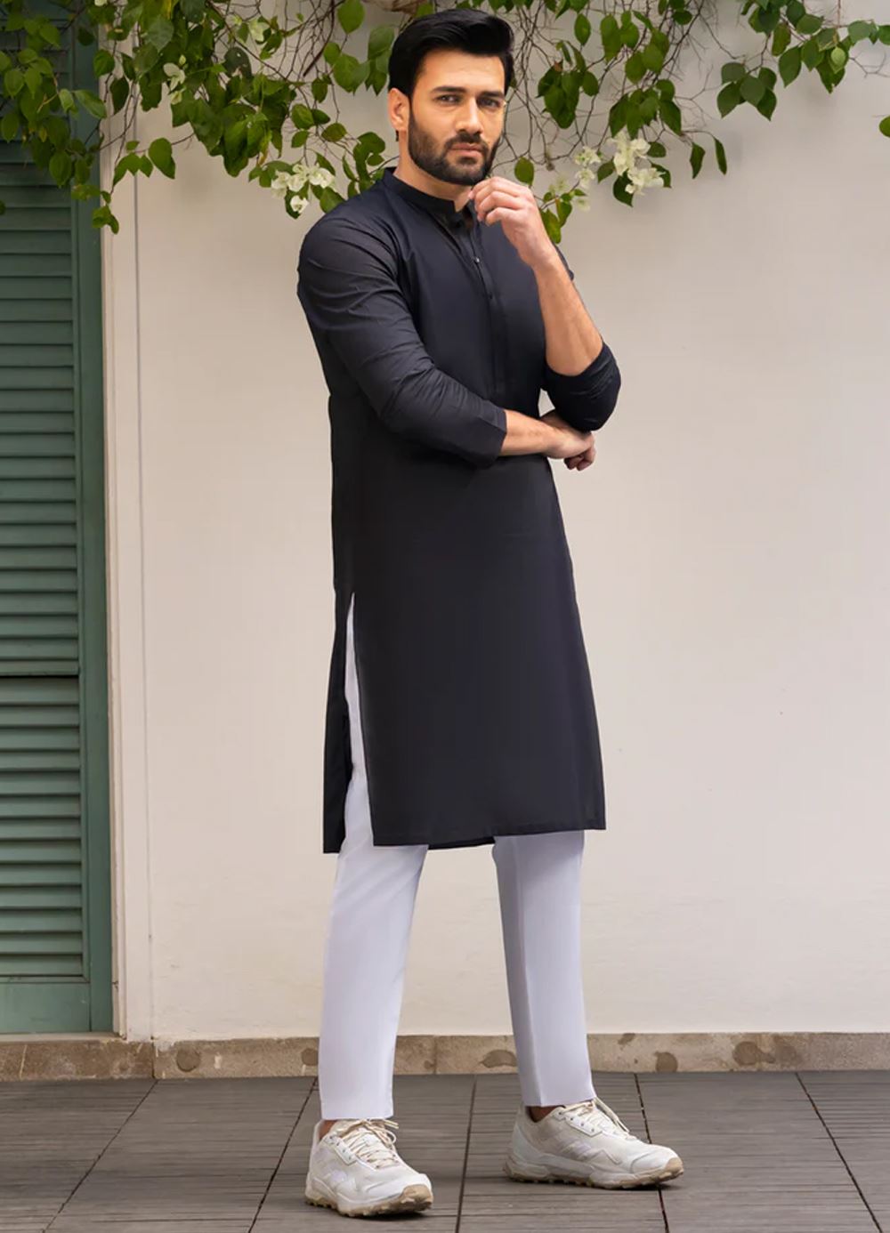 This semi-formal black cotton kurta exudes understated elegance, striking the perfect balance between traditional charm and contemporary sophistication.