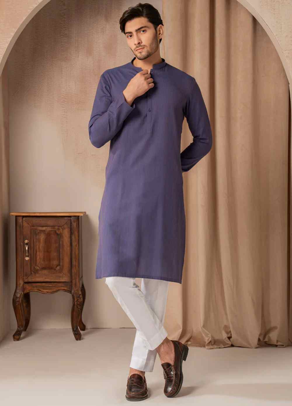 Traditional and simple, this blue cotton bunnat casual kurta is made for comfortable daily wear and relaxed occasions.