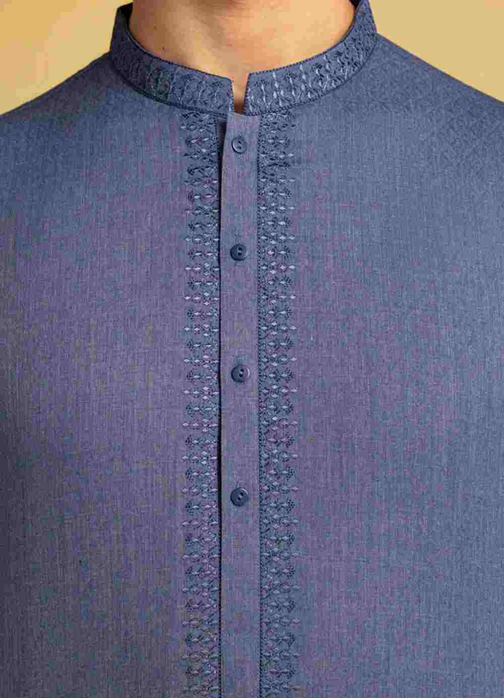 Upgrade your look with this Blue Blended Semi-Formal Kurta, which mixes traditional and modern styles for a classy yet comfortable outfit.