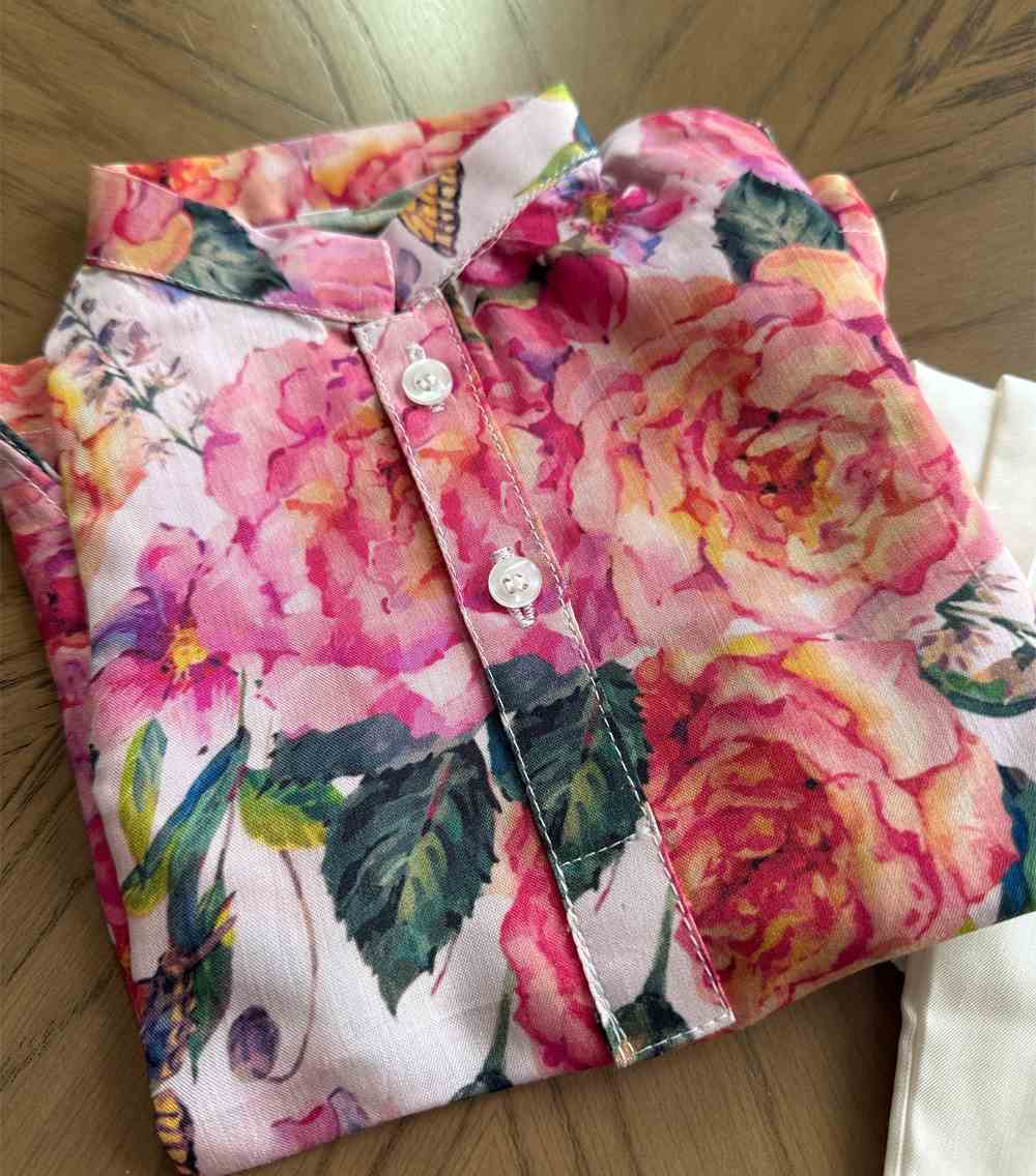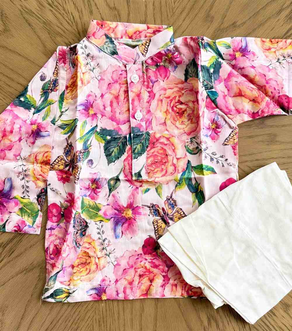 Get your little fashionista ready for any occasion with our Boys Printed Viscose Kurta Set. Made from printed floral viscose fabric, this set includes a kurta and white shalwar, perfect for the festive season and weddings. Guaranteed to make your little one stand out with style and comfort!