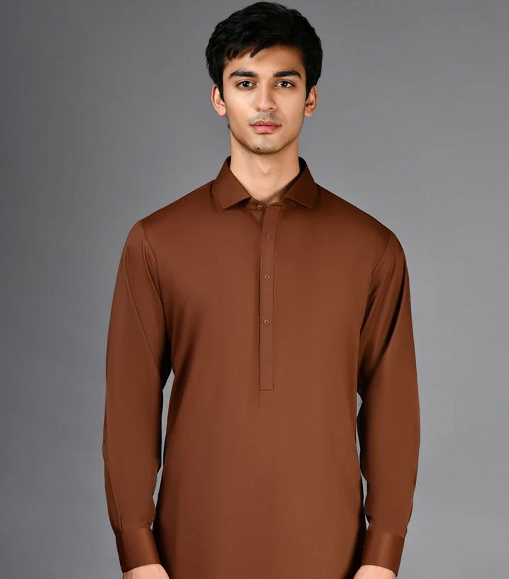 Brown Blended Kameez Shalwar
