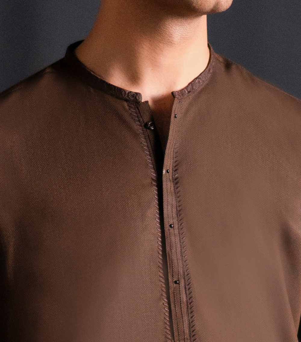 Brown Blended Kameez Shalwar