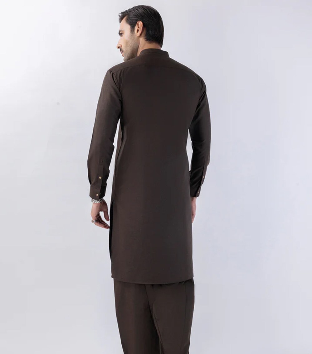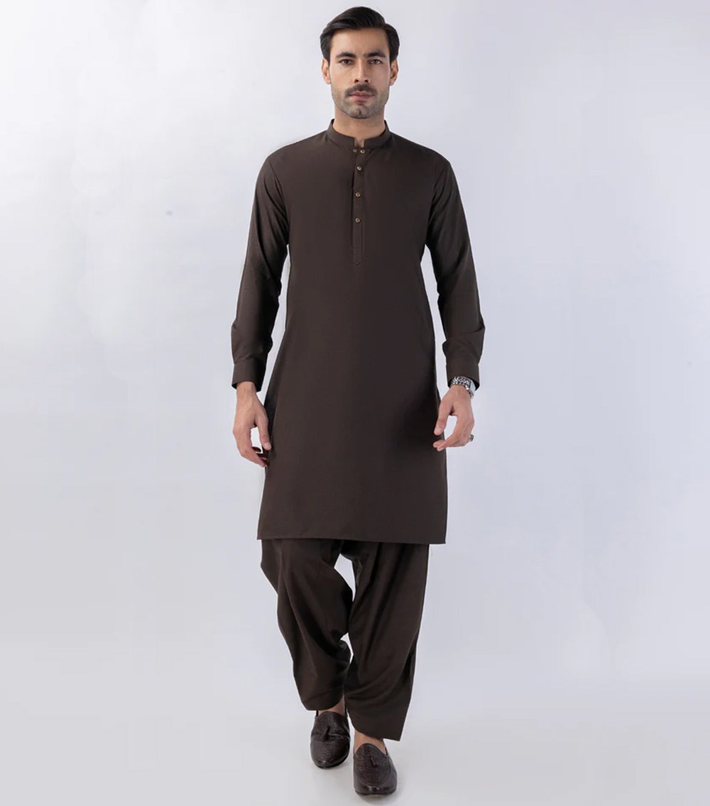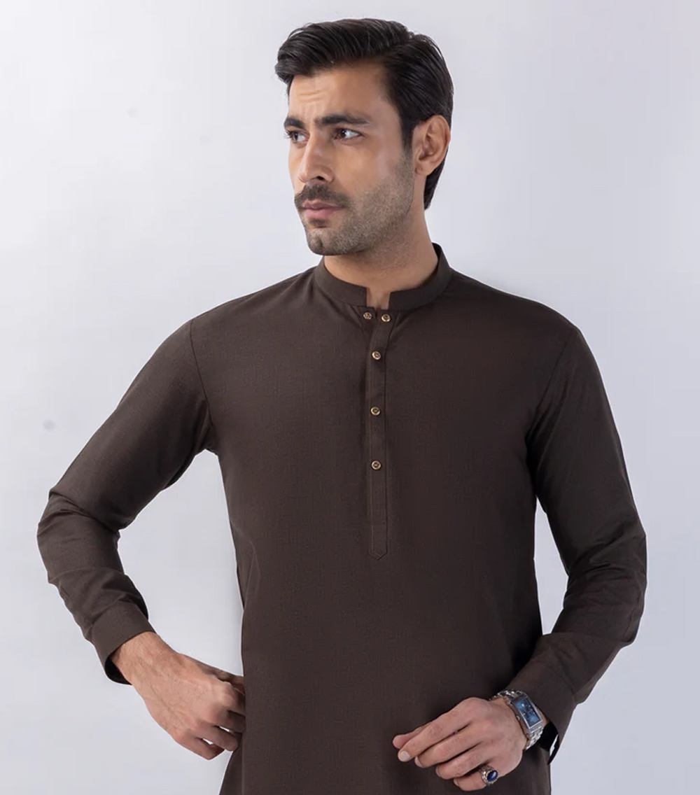 Cut and Sew Kameez Shalwar Featuring Stitch Details on the Placket, Complemented by High-Quality Buttons