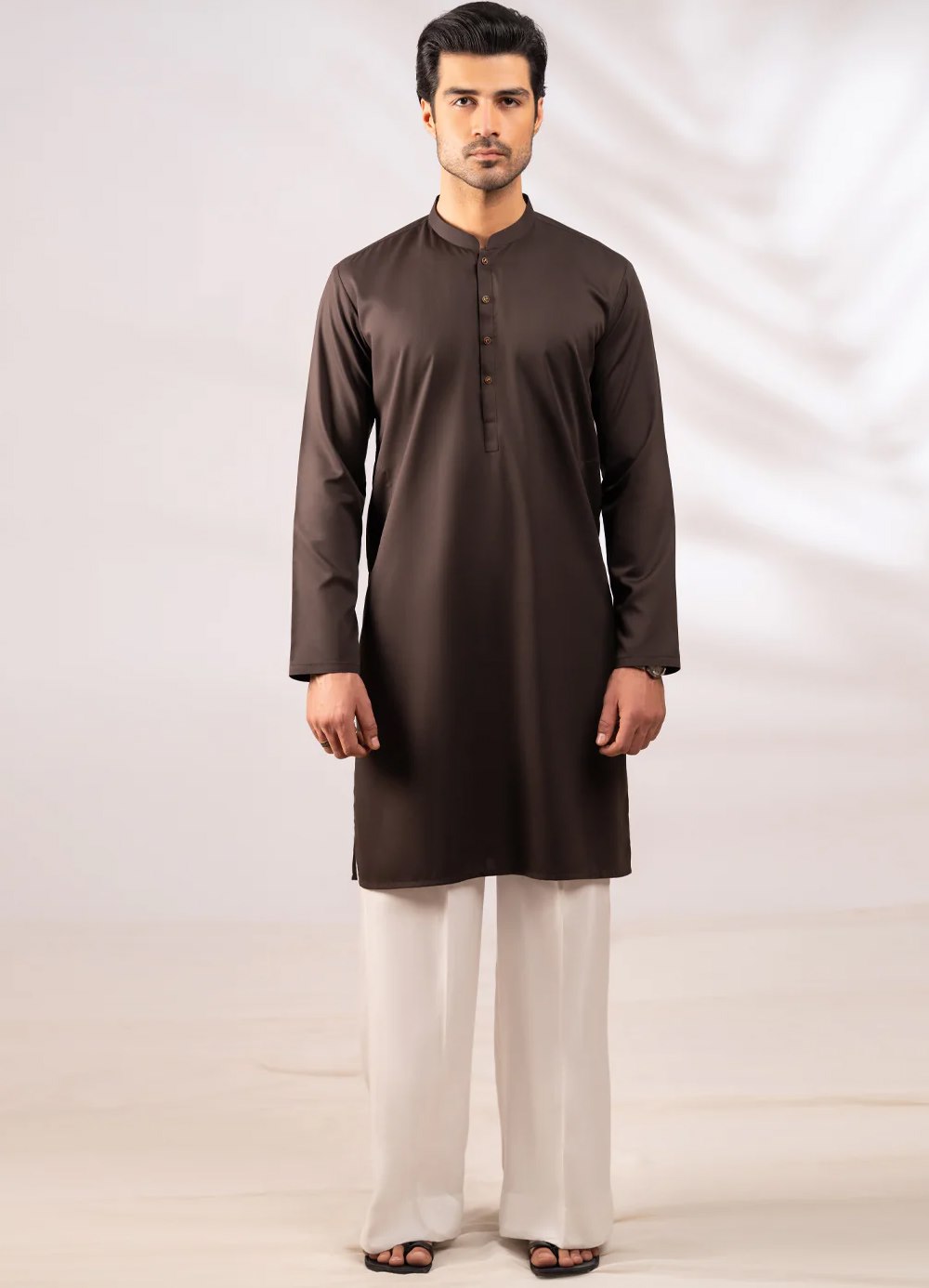 Brown Kurta With Metallic Snap Buttons Fit Style: Regular