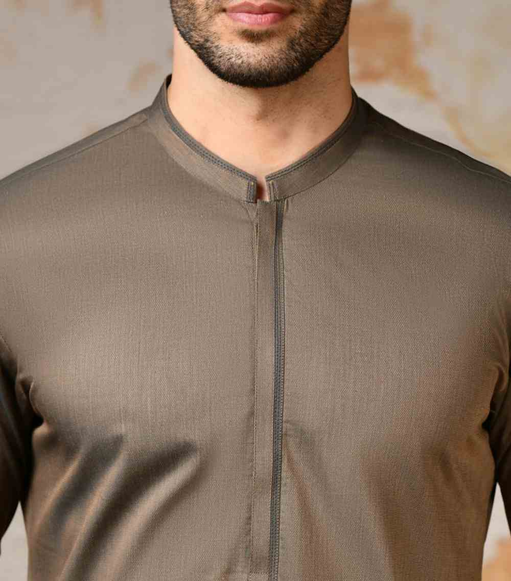 Simple yet stylish this brown cotton casual kameez shalwar offers timeless elegance and versatility perfect for a range of occasions and settings.