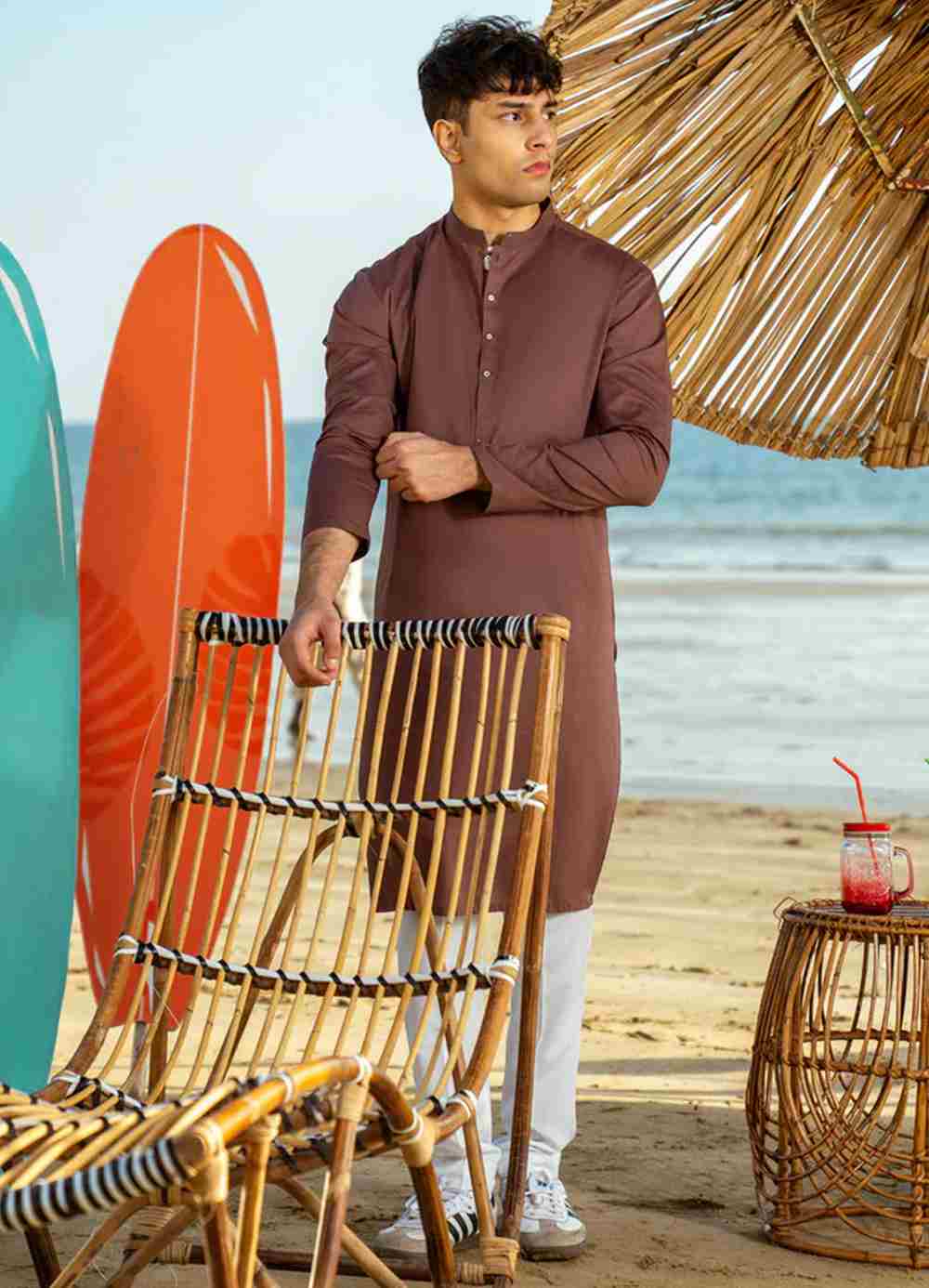 Explore our latest teen boys’ Brown Cotton Kurta, designed with a blend of classic simplicity and Eastern charm. These kurtas offer a stylish yet understated look, suitable for a variety of occasions.