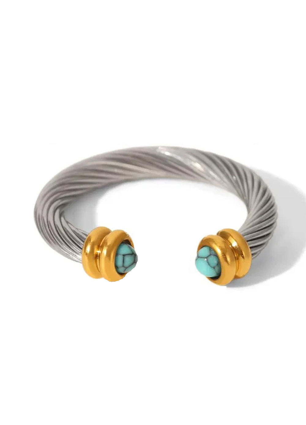 Modern design meets timeless elegance in the Celestial Cable Ring. Crafted with a sleek twisted cable band and finished with smooth gold-toned ends, this ring is accented with rich natural stones that add depth, color, and character.