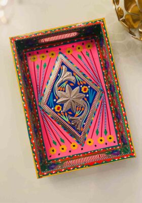 Wooden Tray with Traditional Chamakpatti (sticker art) Work