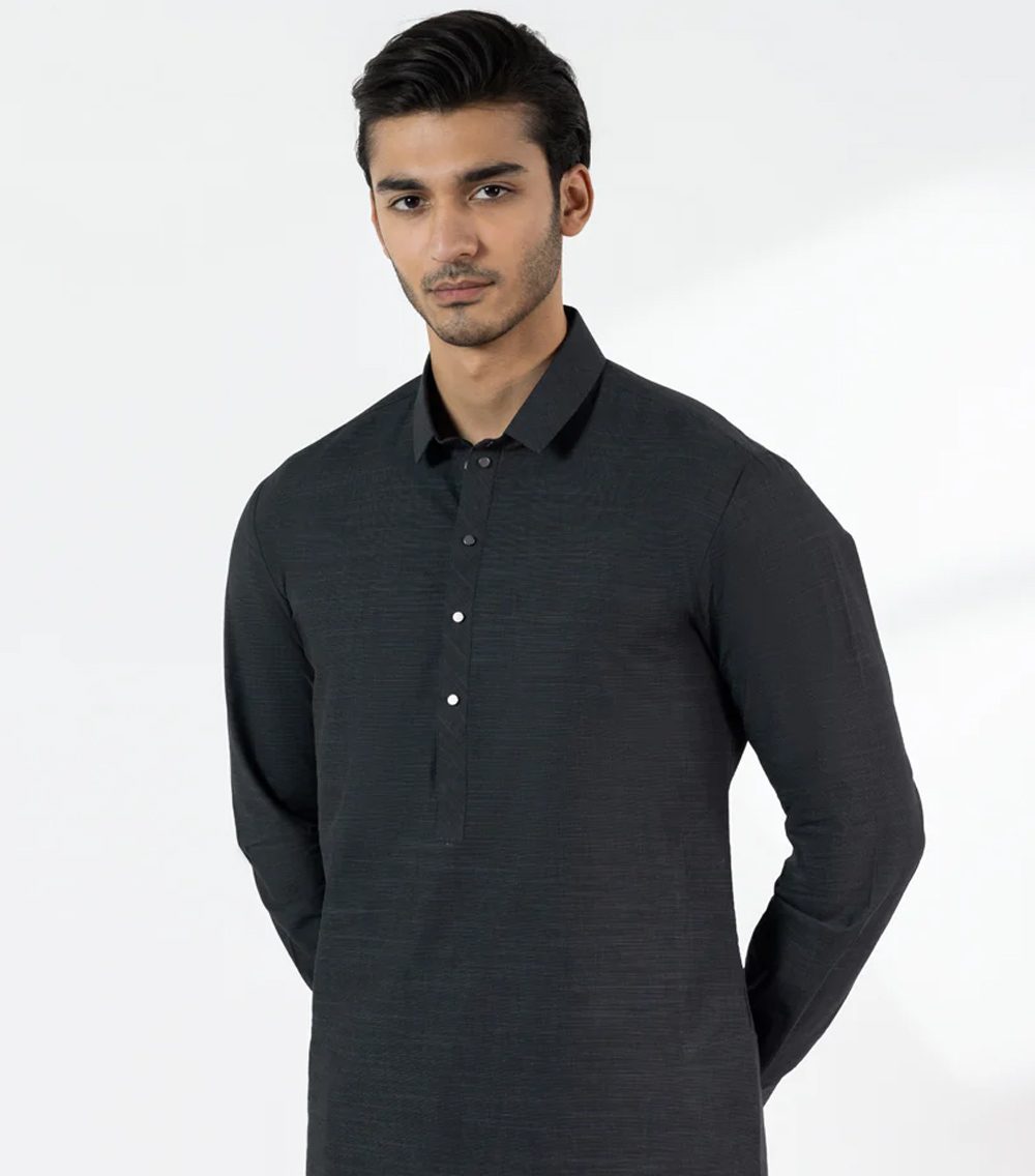 A classic eastern wear set designed with clean stitching and thoughtful detailing. The charcoal cotton casual kameez shalwar offers a neat look & comfortable fit – ideal for long wear, daily use, or special occasions with a touch of tradition.