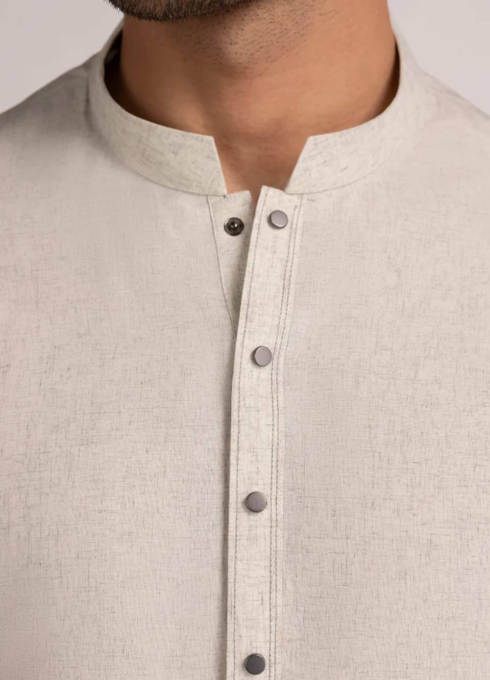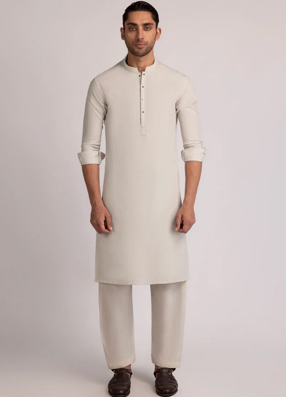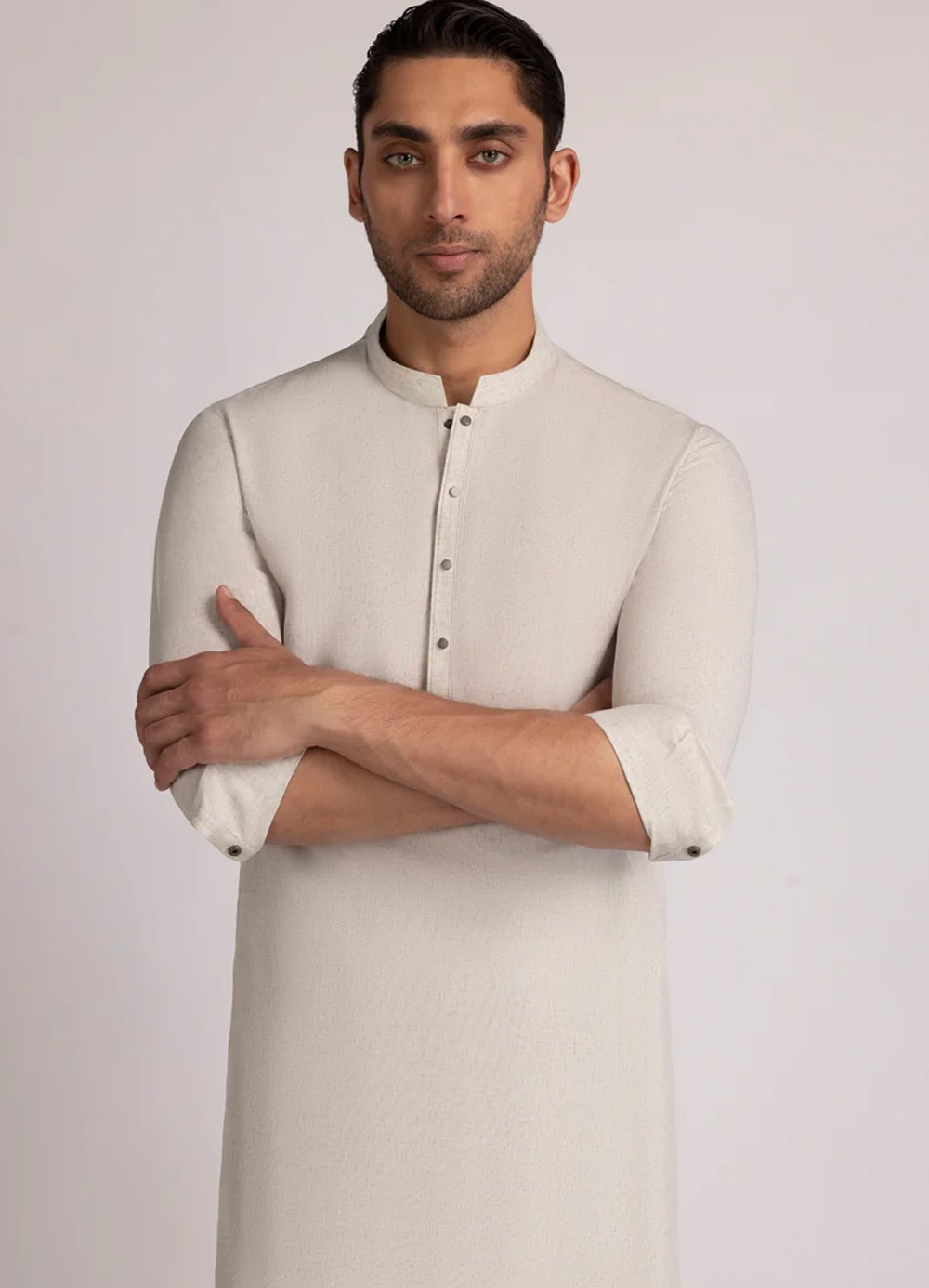 Designed for a sharper, more structured appearance, this Cream Kurta Trousers set offers a modern fit with clean lines. The kurta features subtle detailing, while the straight-cut trousers ensure a neat silhouette. Perfect for events, workdays, or weekend wear.