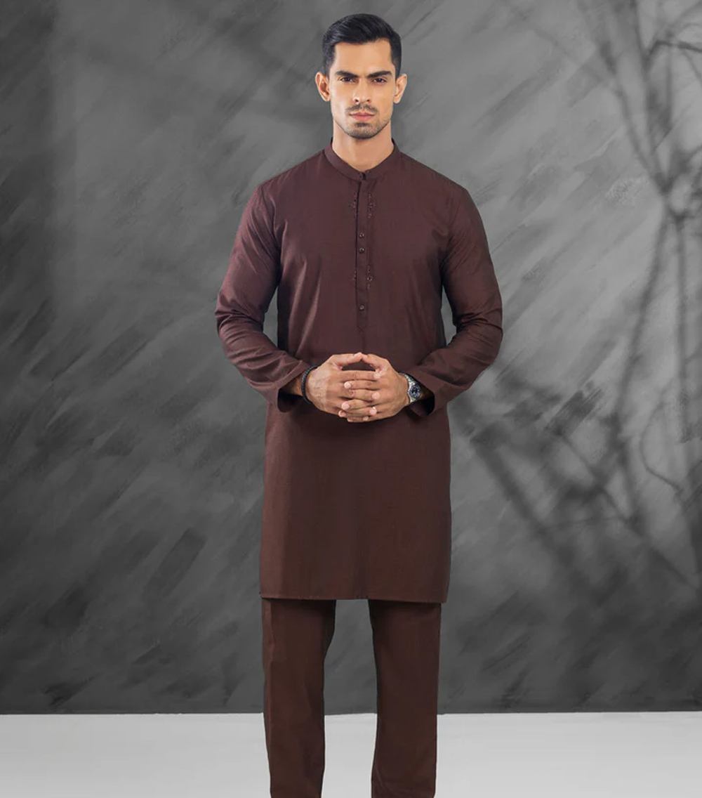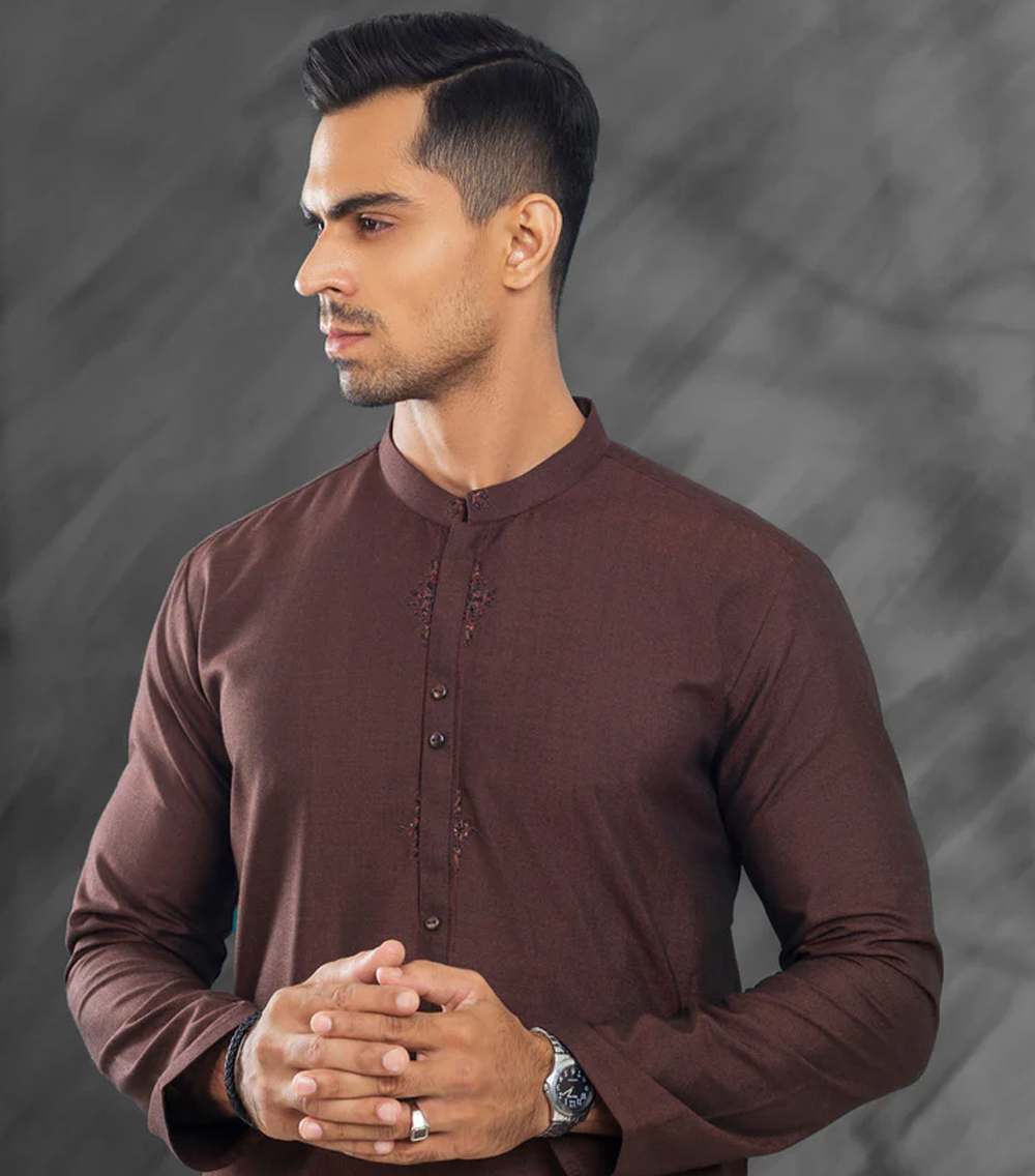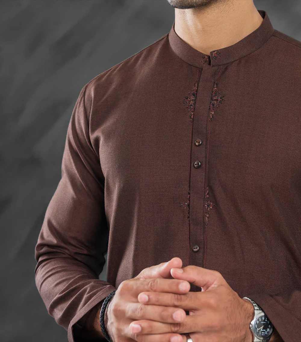 Semi-Formal Kurta Trouser Adorned With Embroidery Around the Placket With High-Quality Buttons Fit Style: Modern Fit