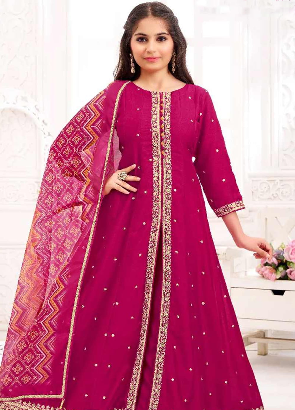 Get ready to turn heads with our Girls Hot Pink Anarkali! This stunning set includes an anarkali, churidar, and dupatta, all made from luxurious silk fabric. The amazing embroidery work adds a touch of elegance to this Fall Festive collection.