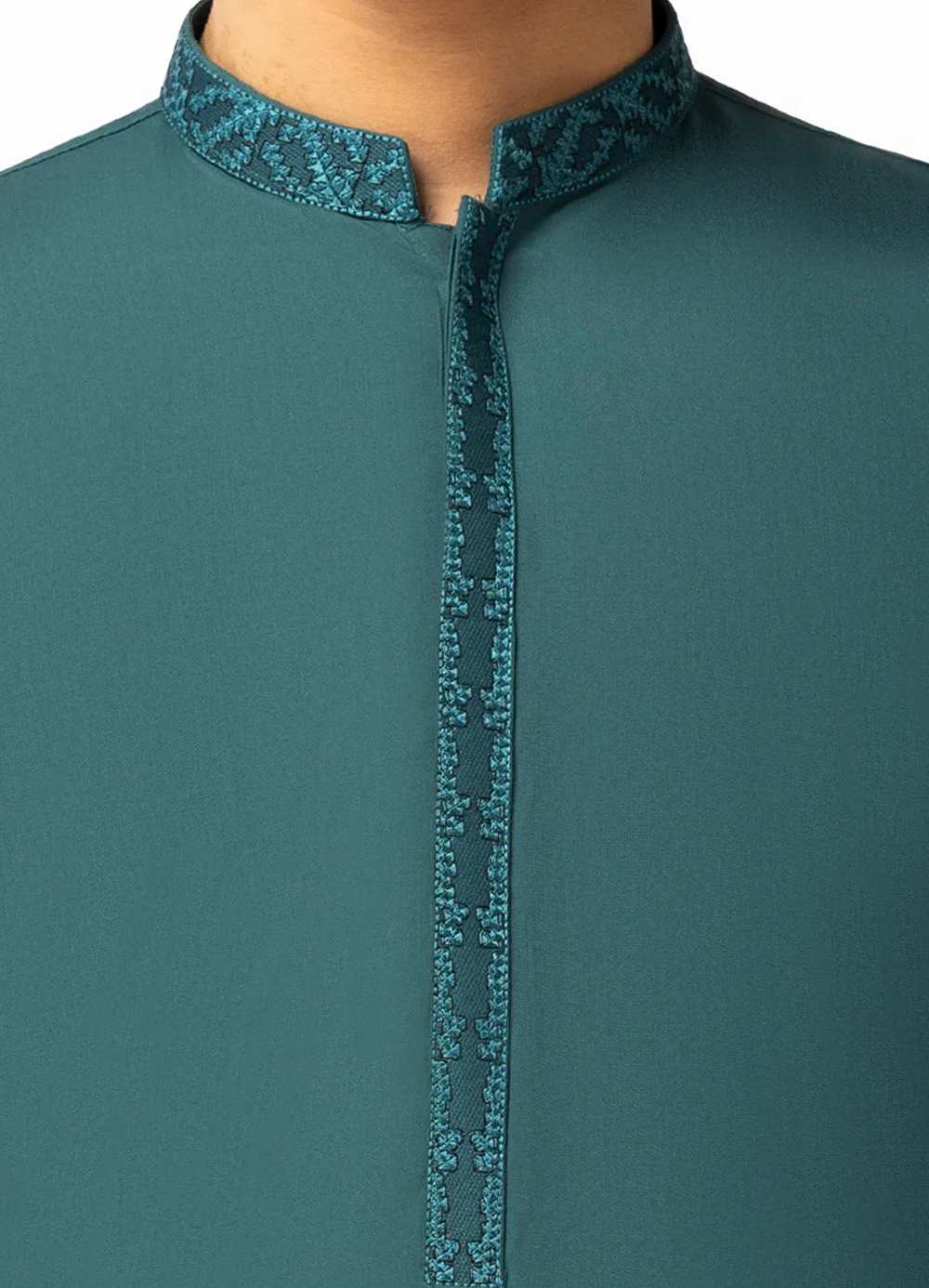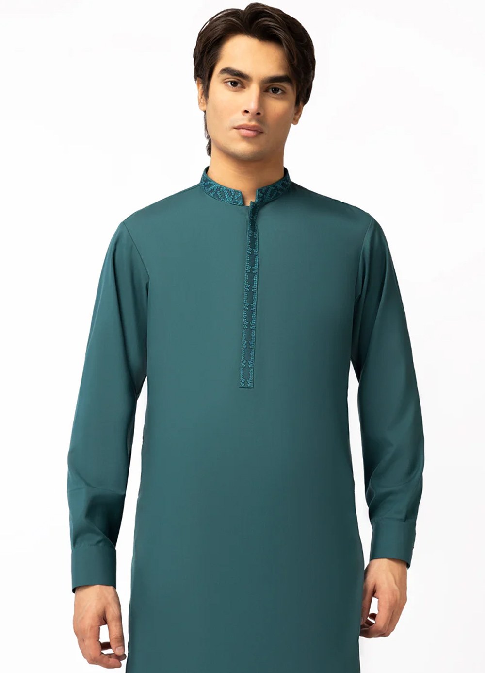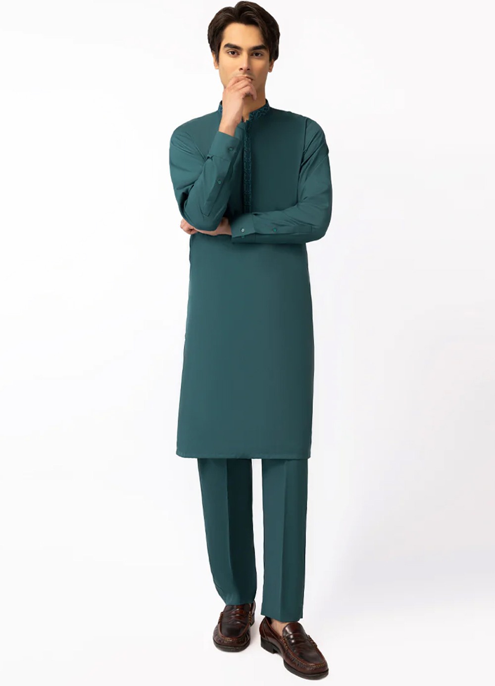 This semi-formal suit showcases delicate embroidery on the collar and placket, offering a perfect blend of traditional charm and contemporary style. Ideal for festive events, family gatherings, or special occasions.