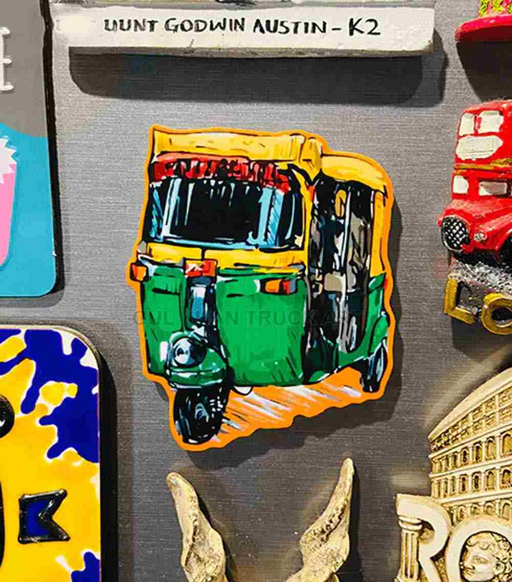 Add a splash of exotic street style to your home with the Gul Khan Green Rickshaw Acrylic Fridge Magnet.