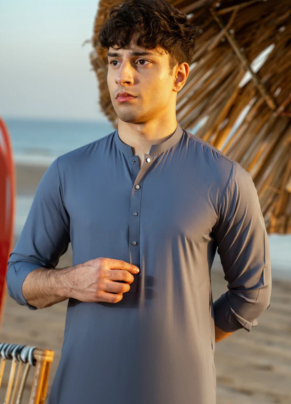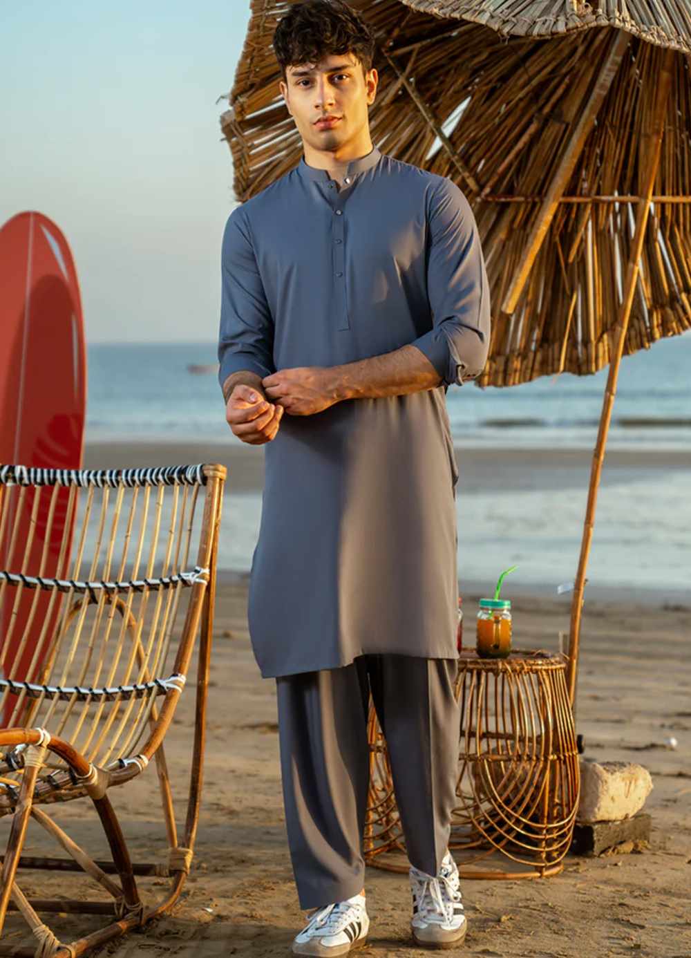 A perfect fusion of tradition and contemporary fashion, this Grey Blended Kameez Shalwar for teen boys exudes effortless style. Its classic appeal offers versatility, suitable for a wide range of events and environments.