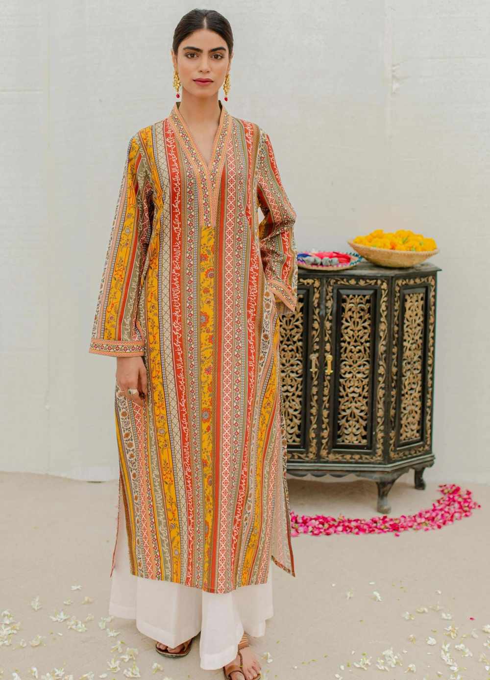 Gulistan (Flowerland) Stripes Kurta – Mustard