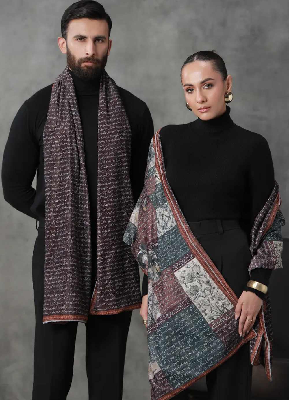 Double-sided premium velvet unisex shawl, featuring Urdu calligraphy of poetry by Rahat Indori.