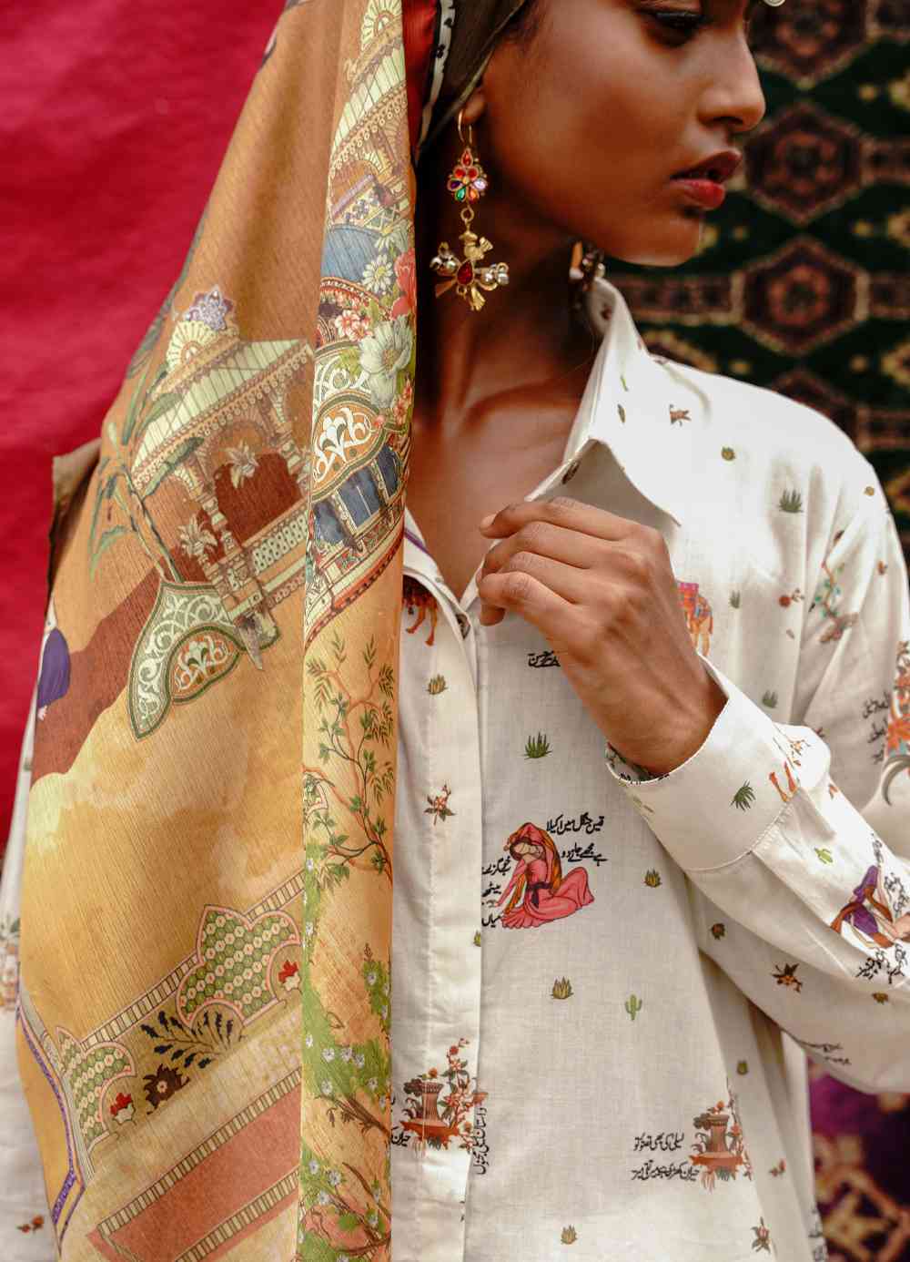 Kahaani Scarf honors the legendary love story of Layla & Majnun, capturing the essence of their passion. Adorned with poetry and intricate details, this piece is a true work of art. It is true a reminder that true love transcends time and space.