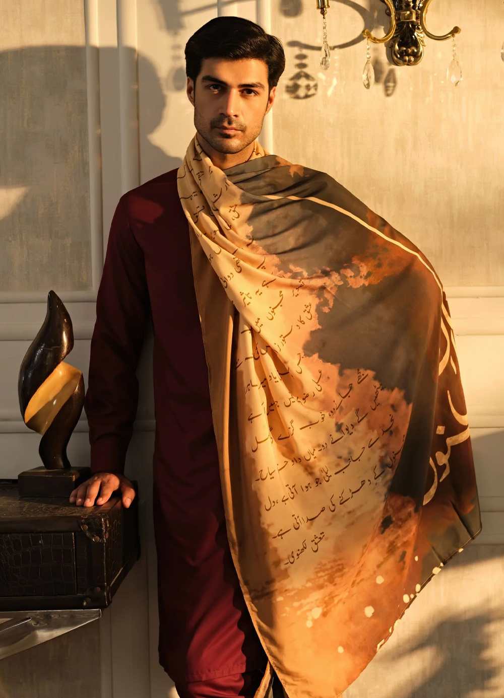 Premium cotton silk odhni, features the Story of Layla-Majnu & the Art of Hand Written Letter.