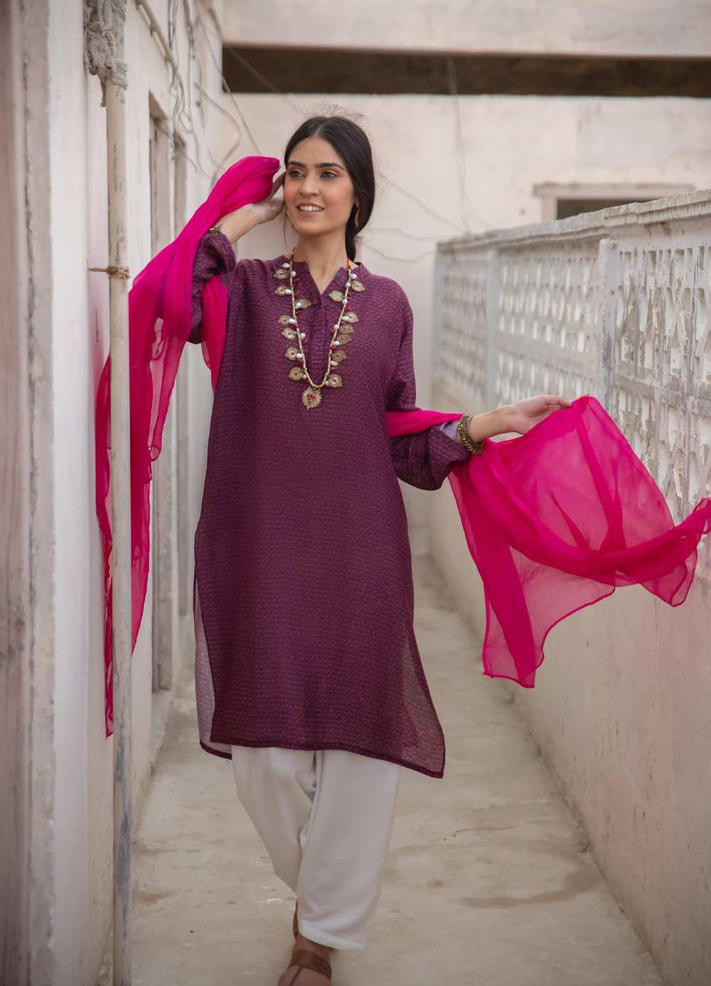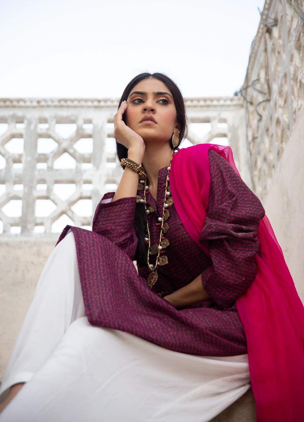 Khayaal (Thoughts Of Manto) Kurta – Burgundy With Pink Text