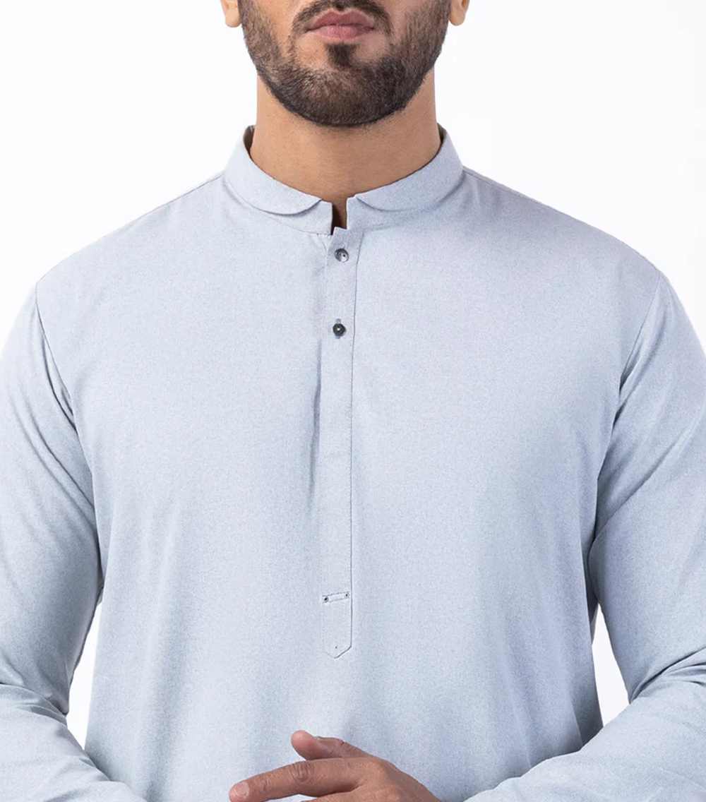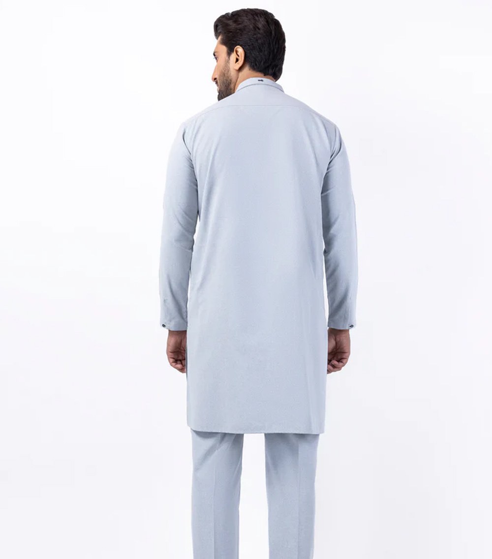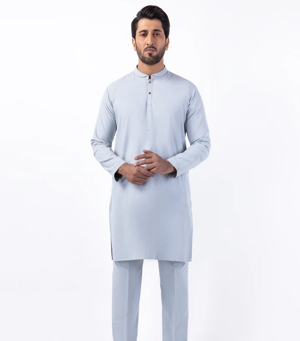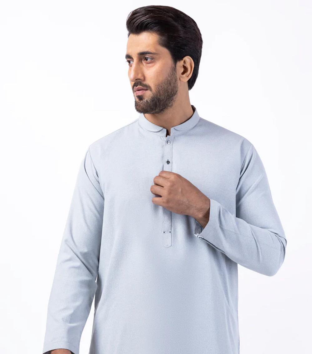 Modern Fit Cut & Sew Kurta Trouser With Details on Placket Embellished With Rivets Featuring Double Collar Fit Style: Modern Fit