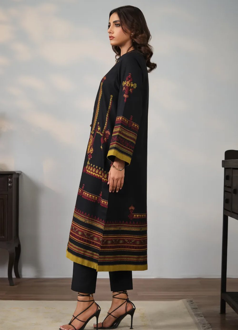 Jacquard 2-piece set, featuring Urdu calligraphy, of poetry by Sahir Ludhianvi, on long shirt paired with straight pants.