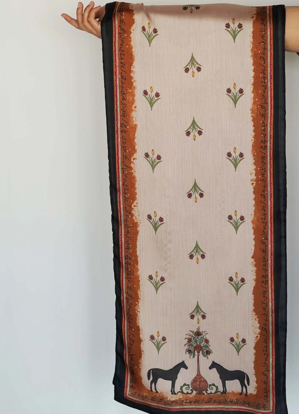 Double-Side Printed Crinkle Silk Stole Featuring Urdu Calligraphy of Words by Hafeez Banarasi.