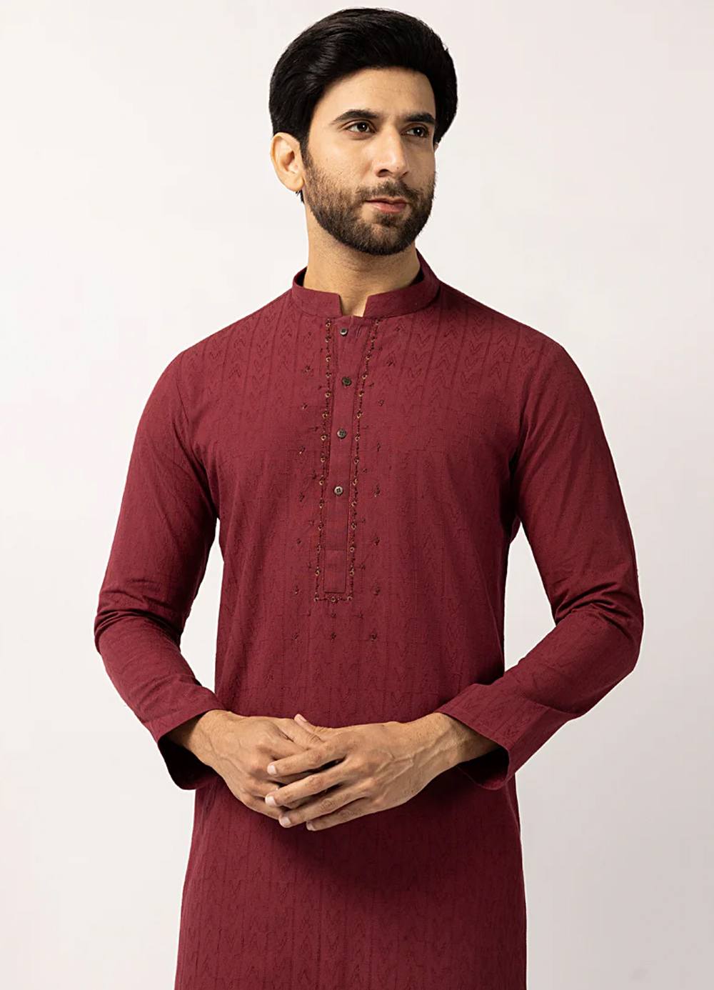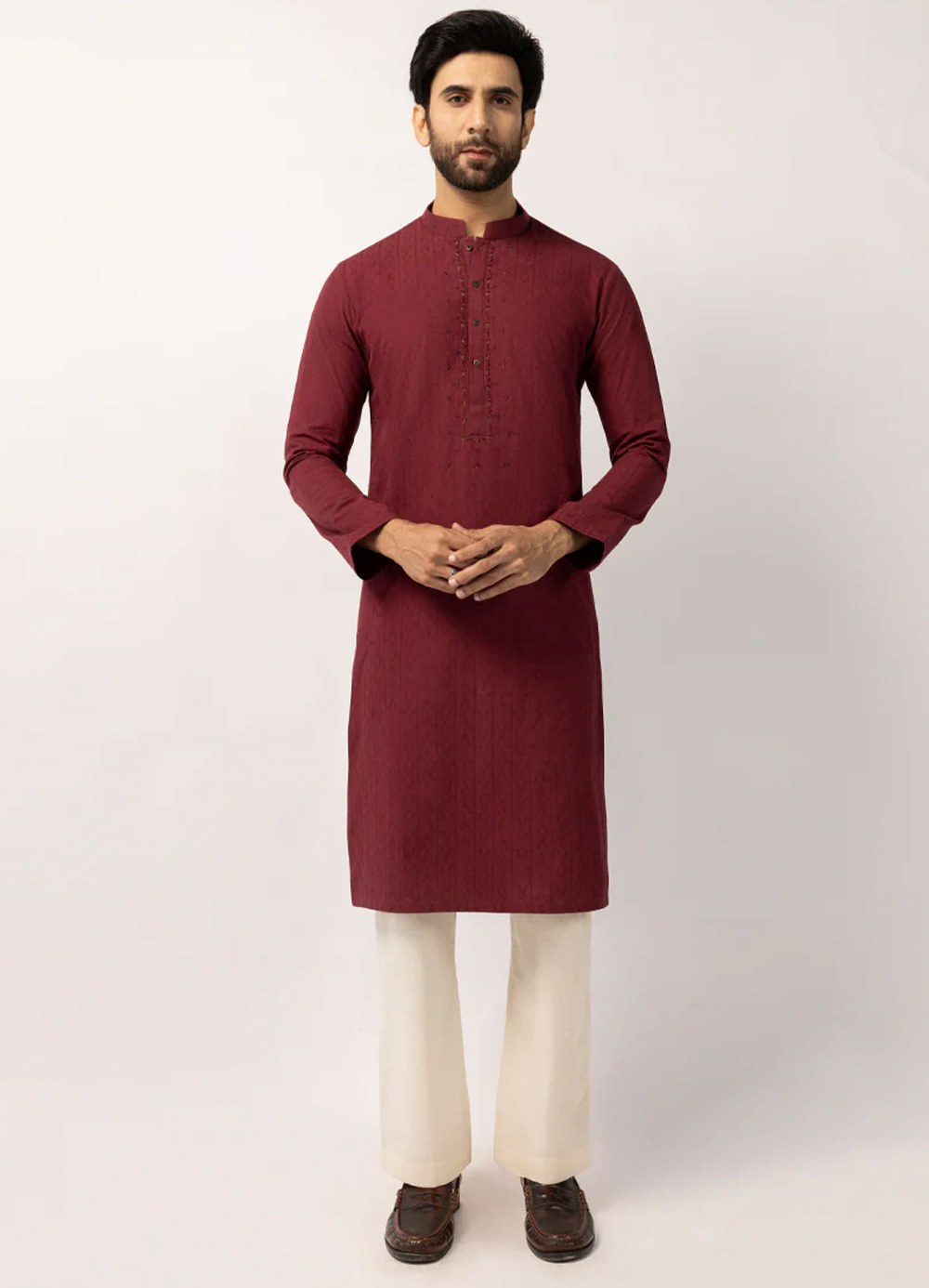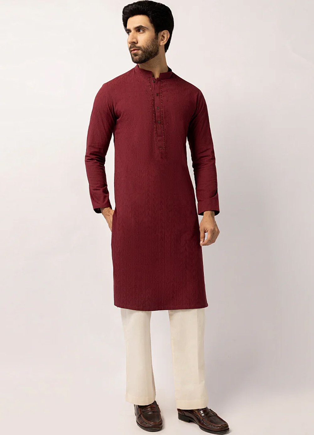 Designed for both tradition and modern style, this Maroon Cotton Formal Kurtais a all-time favorite and versatile choice.
