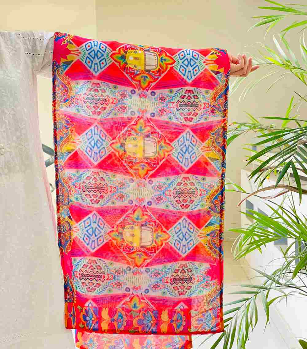 Digitally printed on soft, high-quality silk fabric for an elegant drape, premium feel, and comfortable, stylish wear.