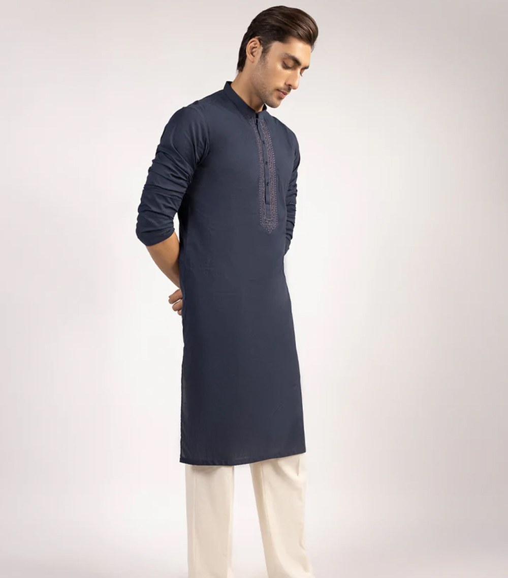 This Navy Blue Cotton Formal Kurta combines elegance with simplicity. Finished with detailed stitching and smart button styling, it’s ideal for semi-formal occasions or casual meetups. A versatile piece that carries both ease and refinement.