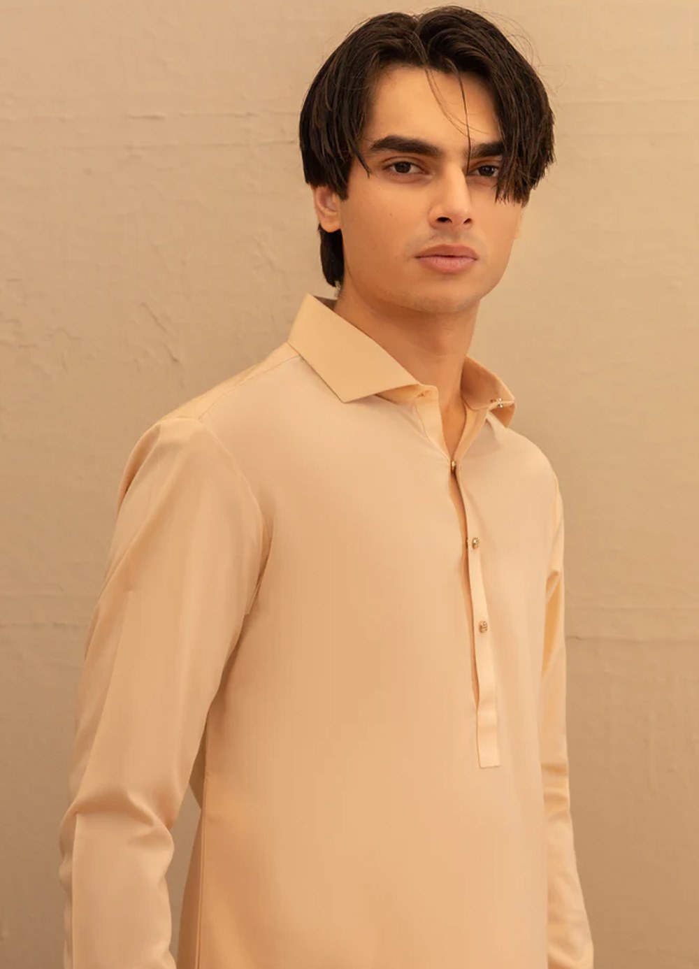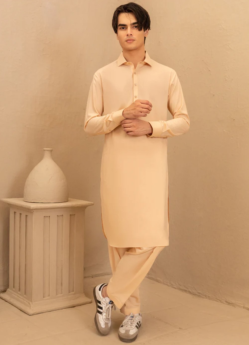 Traditional and simple, this peach blended plain kameez shalwar is made for comfortable daily wear and relaxed occasions.