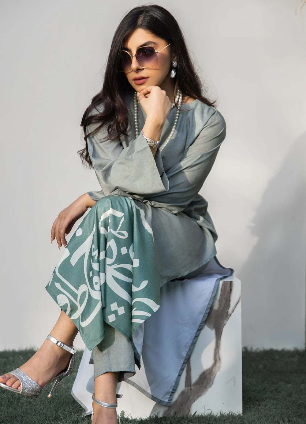 Qalb (Heart) Co-ord Set – Grey Teal
