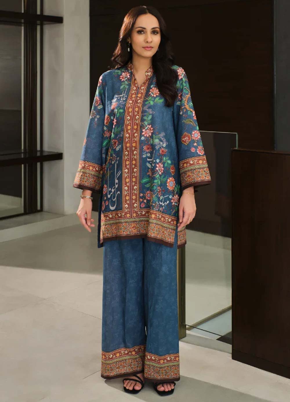 Printed 2-piece lawn co-ord set, featuring beautiful Urdu words calligraphed throughout the kurta.