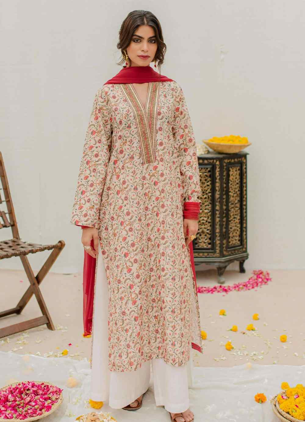 Printed Long Length Kurta, Made from Breathable Premium Lawn. Featuring Urdu Words.