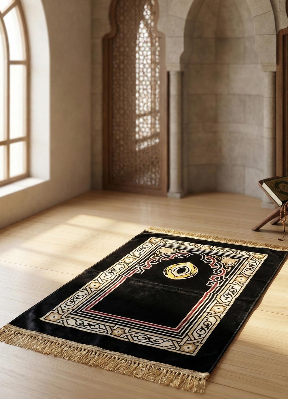 Elevate your daily worship with our Serene Heritage Premium Padded Velvet Prayer Rug Collection.