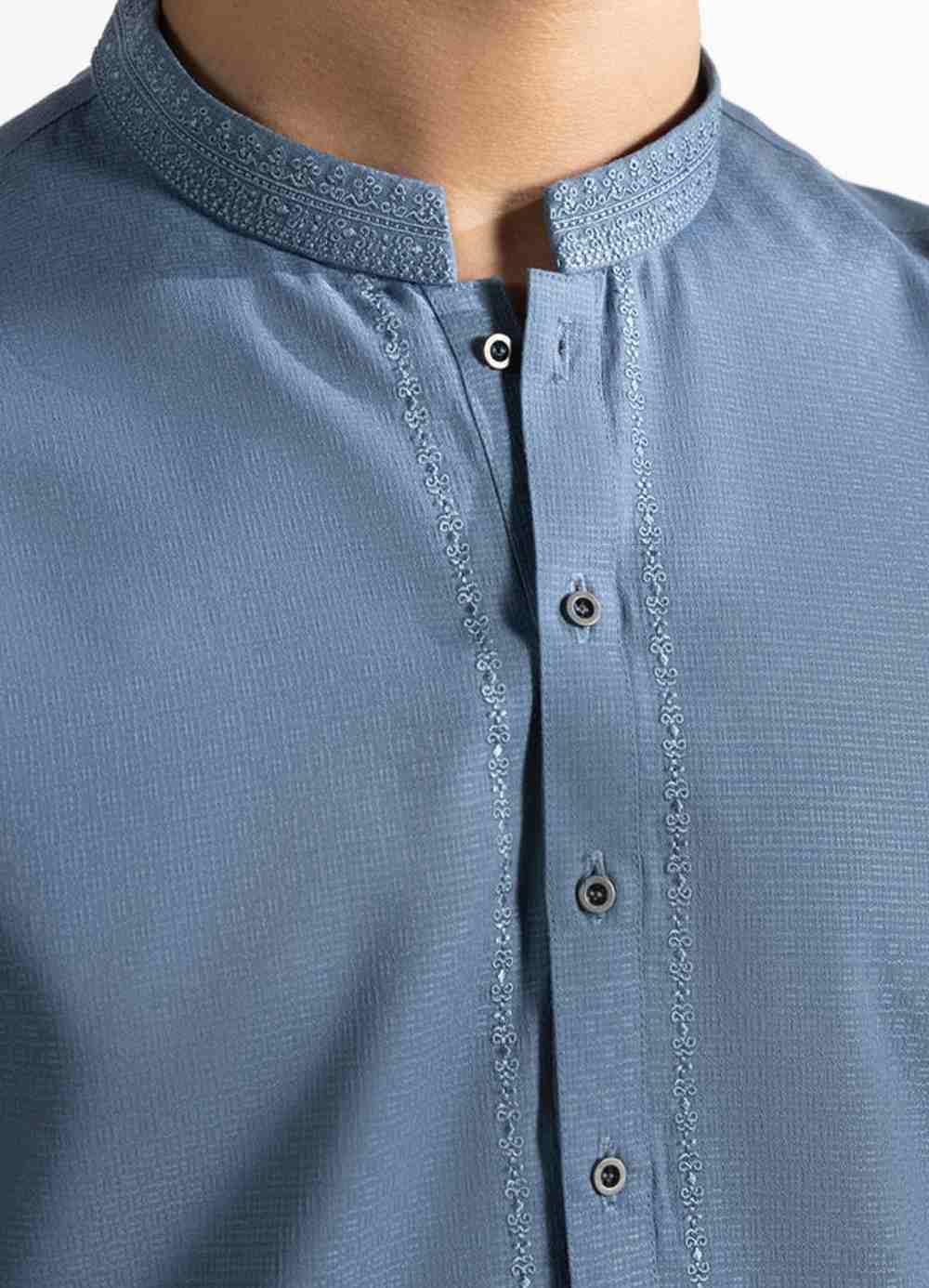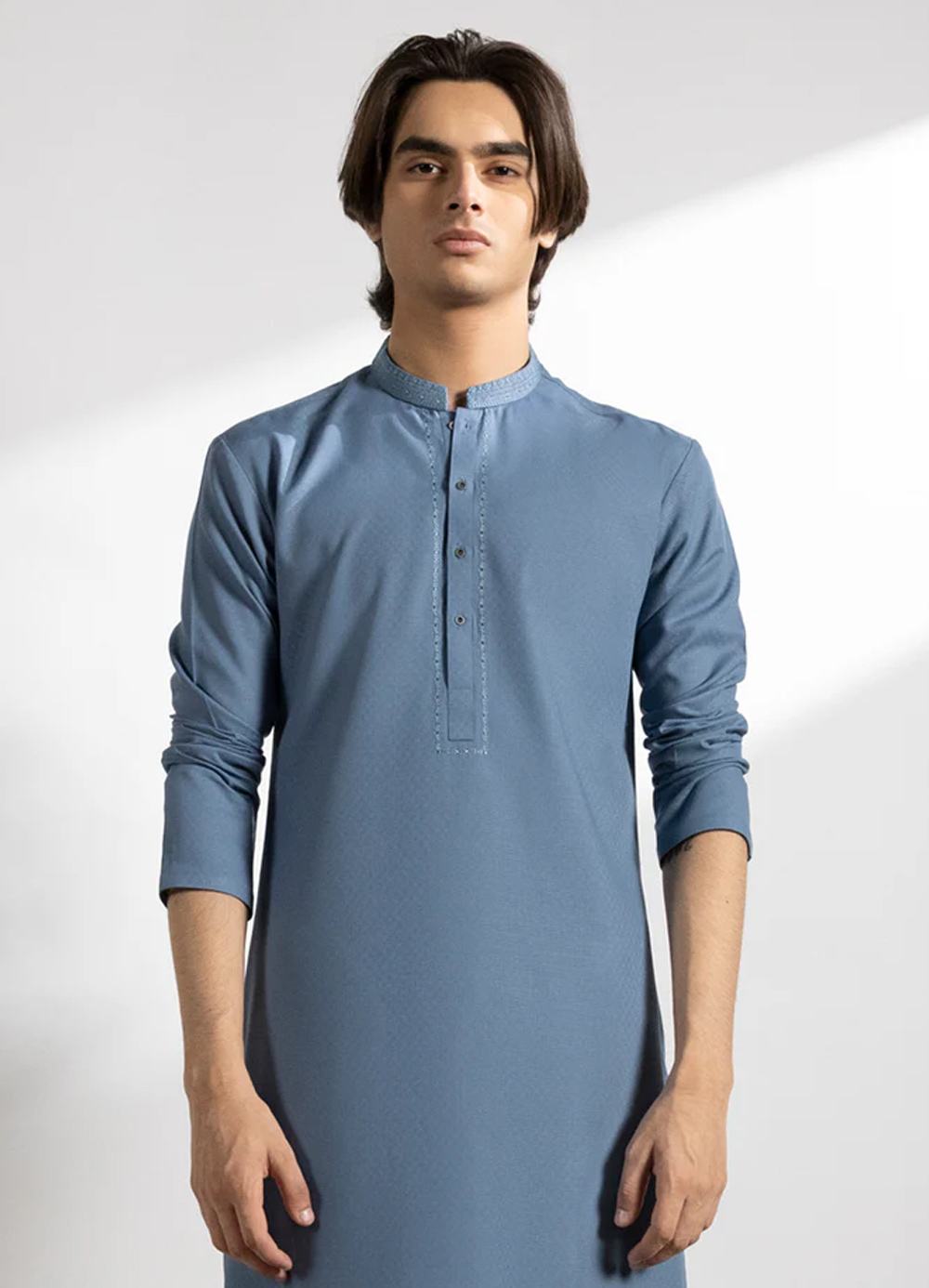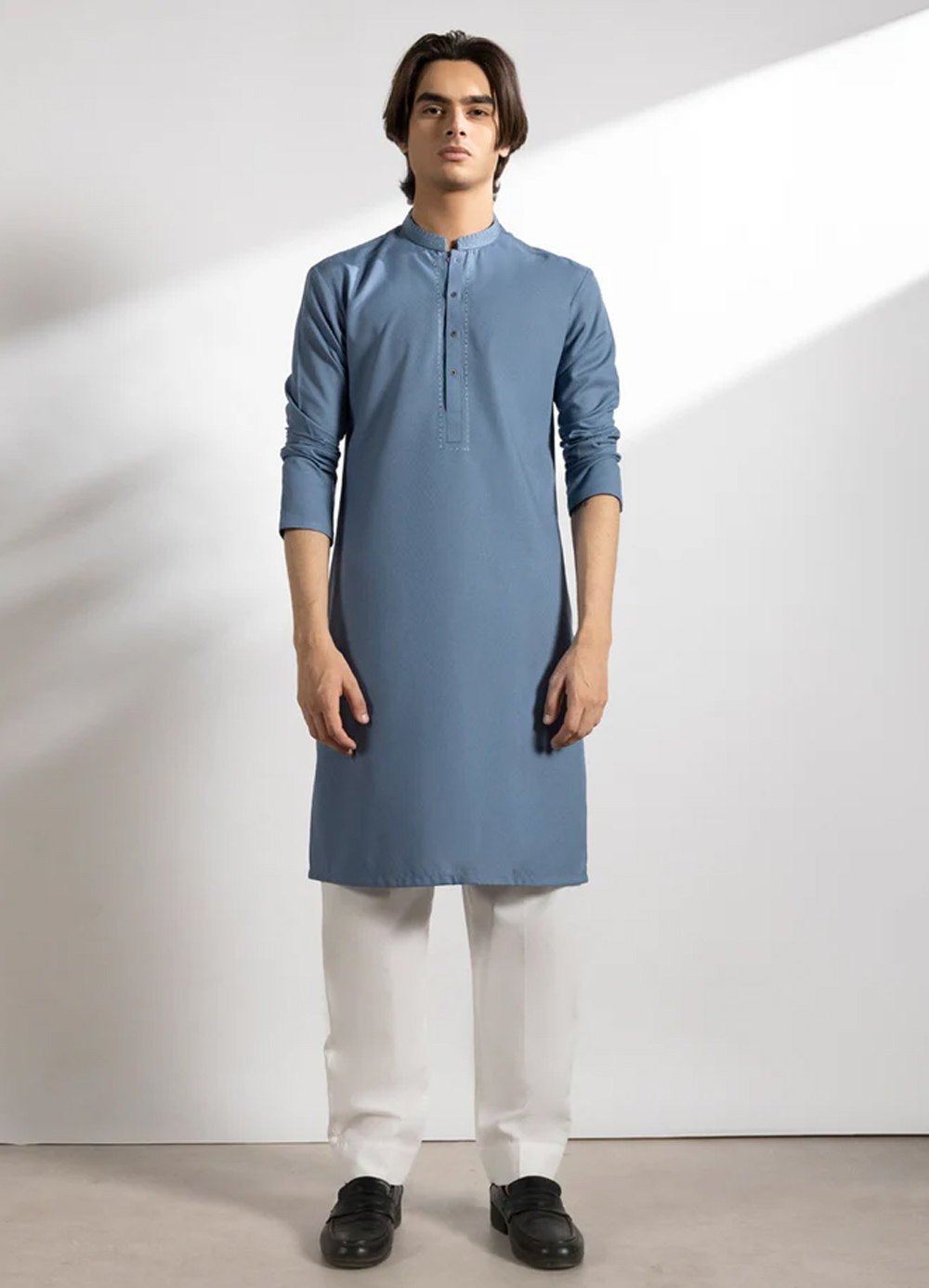 A well-crafted Sky Blue Blended Kurta featuring detailed stitching and tasteful patterns. Contrasting or matching buttons give it a stylish edge without losing its elegant charm. A smart choice for teens who prefer a decent yet trendy outfit.