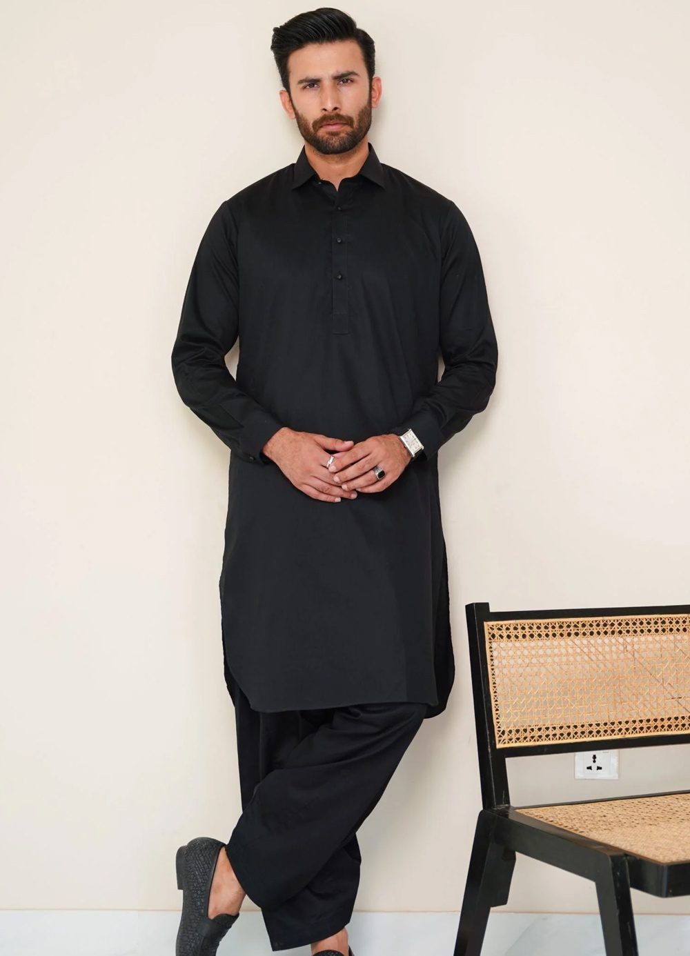 Textured Cotton Kameez Shalwar – Jet Black (Men)