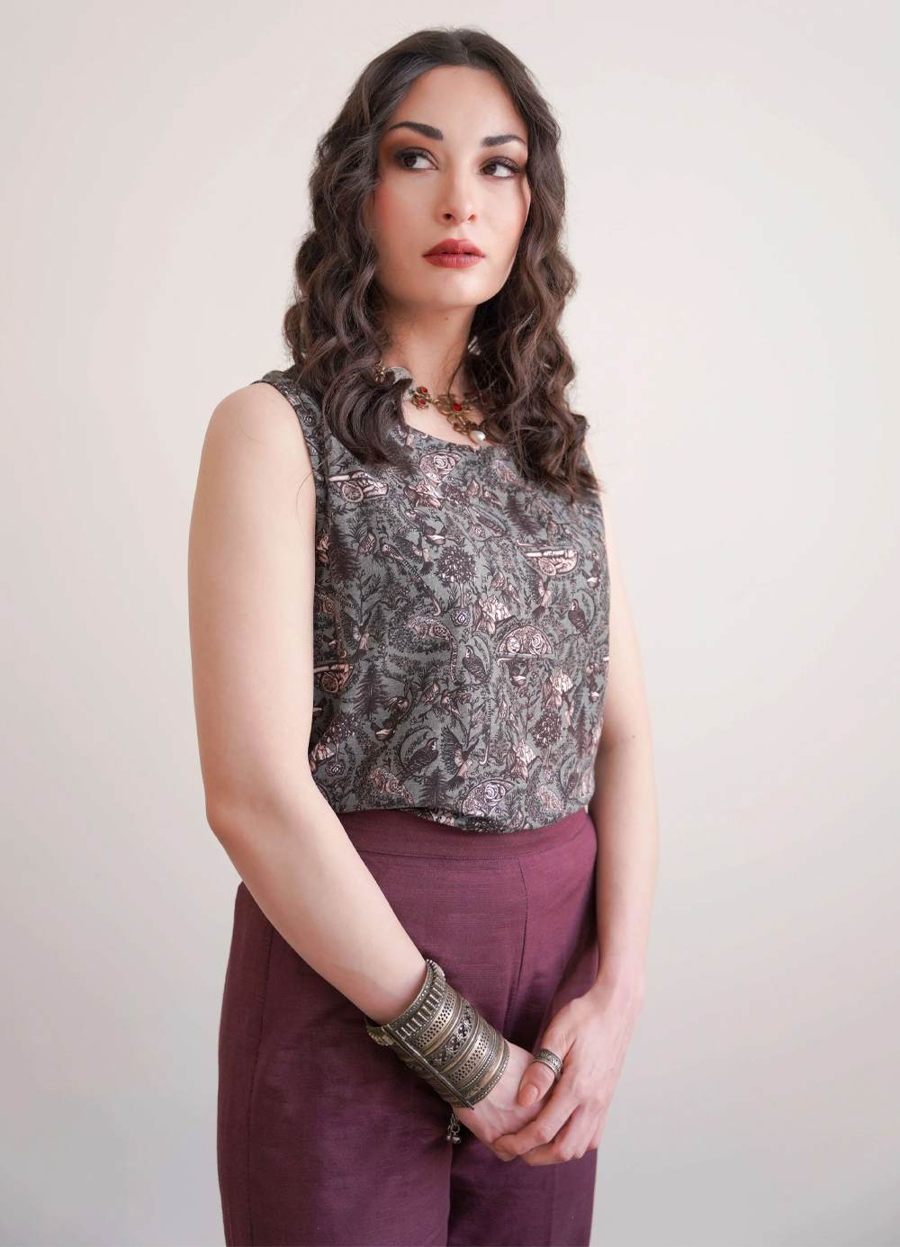 Khaddar Short Length Sleeveless Inner Top Featuring Urdu Calligraphy of Poetry by Allama Iqbal.