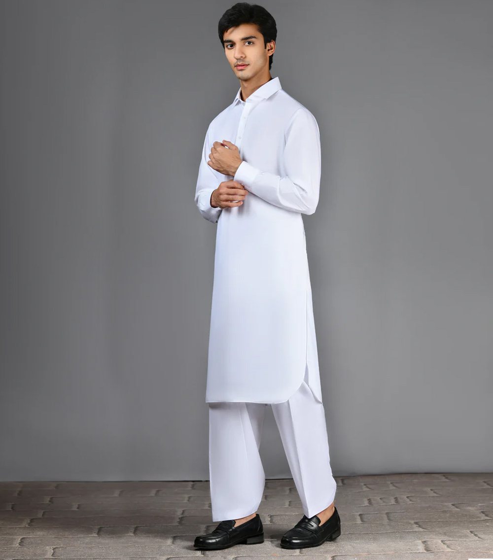 White Blended Kameez Shalwar