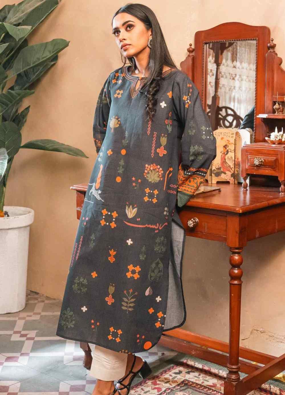 Printed Long Length Kurta, Made from Premium Lawn. Featuring Words of Nida Fazli Calligraphed Throughout.